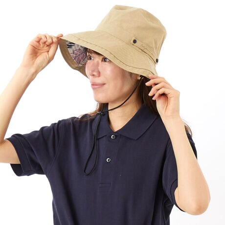 表面はシンプルな1トーンデザインを採用。ツバ裏部分にリーフ柄プリントが入った大き目設計のマリンハットです。日よけ、紫外線対策にオススメのアクティビティーハットです。