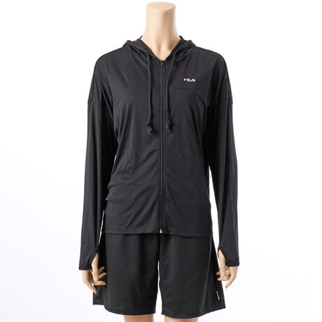 パーカ+タンキニ+ビキニパンツ+スウェット生地パンツの4点セット。パーカはゆったりシルエットのストレスフリーで着心地抜群。UV遮蔽率90%以上で指穴も付いているので手の甲まで日焼け防止対策バッチリです。セットパンツはスウェット生地でスポーティーカジュアルに。ポケットも付いているので便利です。夏のプールや海に最適な水着です。