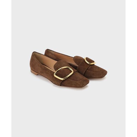 上質なやぎ革で作られた、タイムレスに愛されるローファー風フラットシューズ。スマートに足に沿う大人なシルエットにアッパーに添えられた大きなゴールドバックルが一際目を惹く、クラス感溢れる一足です。