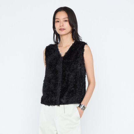 フリンジのような立体感がコーディネートを華やかにしてくれる、前後で着られるツッキリジャカード2WAYジレです。