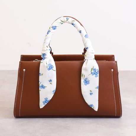 ・花柄のスカーフが可愛い小さめ上品バッグ。