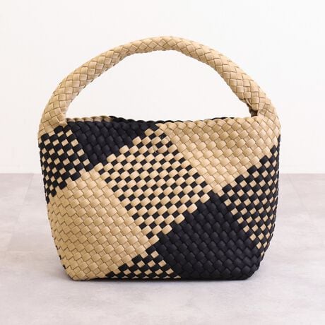 ・トレンド感漂う編み込みデザインが上品なワンハンドルバッグ。