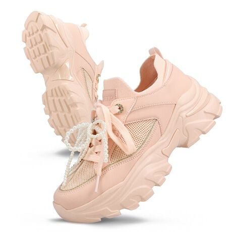パールのリボンチャームが目を引く、華やかなデザインのスニーカー。チャームは取り外し可能な2way仕様で、気分やコーディネートに合わせたアレンジが楽しめる。切替部分にはグリッターライン、シューレースホールにはビジューをあしらい、細部までこだわった1足。カジュアルになりすぎないので、デイリー使いからきれいめコーデにもぴったりな、フェミニンムード高まるスニーカー。サンプルにて撮影をしておりますので、中敷色、ロゴ色、裏地の色の仕様に変更がある場合がございます。あらかじめご了承ください。