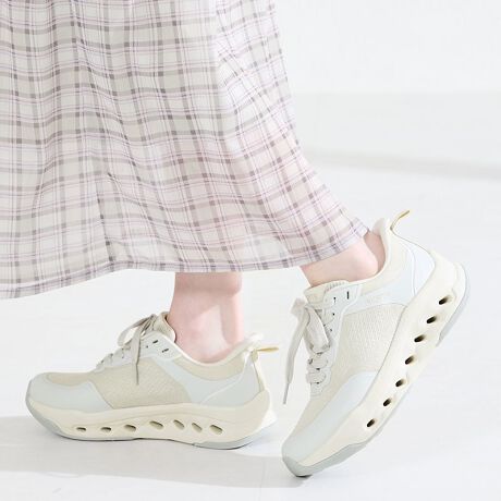 ・凹凸やホールの空いたソールデザインがスポーティーで都会的な印象に【STAFF コメント】