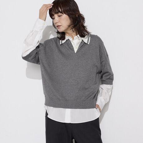 また、シャツの上からレイヤードして袖をのぞかせるカジュアルスタイルもおすすめの着方です。