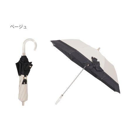 大きなグログランリボンが印象的で上品なデザインの晴雨兼用折り畳み傘。
