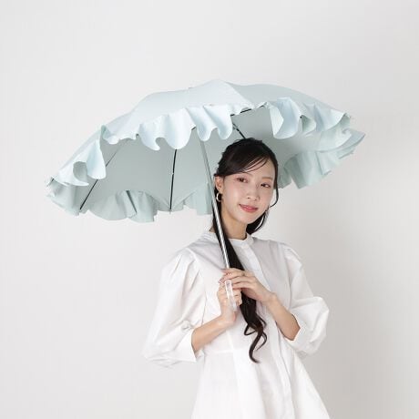 晴雨兼用日傘 ショート傘 フレアフリル ロゴチャーム付き 遮光 遮熱 UV