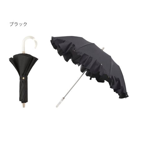 晴雨兼用折りたたみ日傘 楽折 フレアフリル ロゴチャーム付き 遮光 遮熱 UV