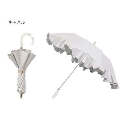 晴雨兼用折りたたみ日傘 楽折 フレアフリル ロゴチャーム付き 遮光 遮熱 UV
