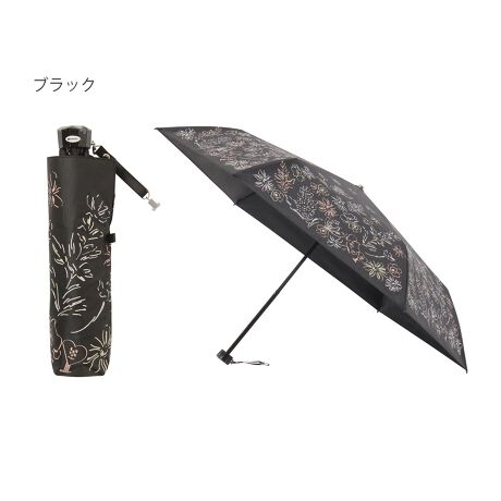 晴雨兼用折りたたみ日傘 楽折ミニ ドローイングフラワー 遮光率100% 遮熱 UV