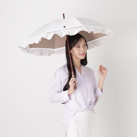 マルイウェブチャネル   /   傘・レイングッズ   /   日傘   /   【木棒】晴雨兼用日傘 ショート傘 ストライプフリル ポロポニー ワンポイント 遮光 遮熱 UV