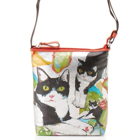 シルバー生地の上に透明感のあるカラフルなプリントが目を引く新感覚バッグです。
