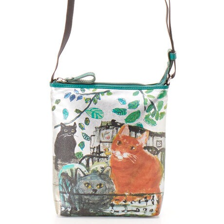 シルバー生地の上に透明感のあるカラフルなプリントが目を引く新感覚バッグです。