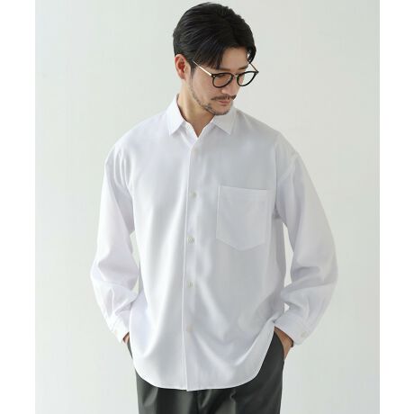 洗練された生地感とベーシックなデザインでジャンルレスに着回せます。程よくゆとりのあるシルエットのおかげで、キレイめコーデはもちろんカジュアルな装いにも合わせられる万能シャツです。清潔感が続く防シワ機能付き生地なのでオフィスカジュアルにも適しており、オンオフ問わず重宝する一着です。