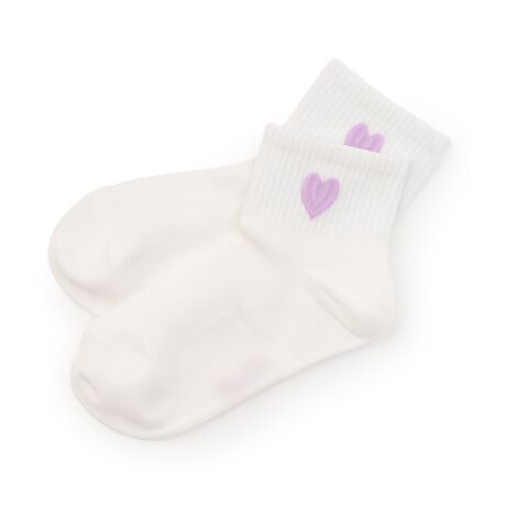 サイドのハートマークが目を引く、可愛らしいソックスです。