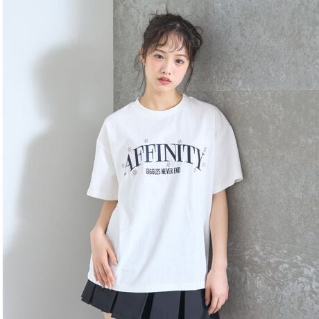 カレッジ風のフラワーモチーフが可愛らしい半袖Tシャツです。