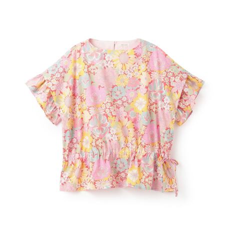 リバティファブリックスの「Summers in the Sun(サマーズ・イン・ザ・サン)」を使用したチュニックです。さまざまな草花がカラフルに描かれている個性的なデザイン。サイドにドローコードを備えており、絞ることでシルエットの変化を楽しめます。後ろ衿ぐりはボタンあき仕様で、首を通しやすいのもポイントです。