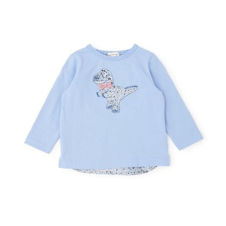 デフォルメされた恐竜のアップリケが可愛いTシャツです。