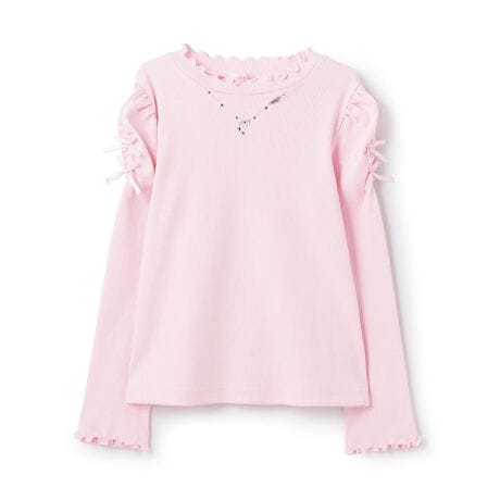 パフスリーブに同色のリボンをトッピングし、さりげないアクセントを添えました。
