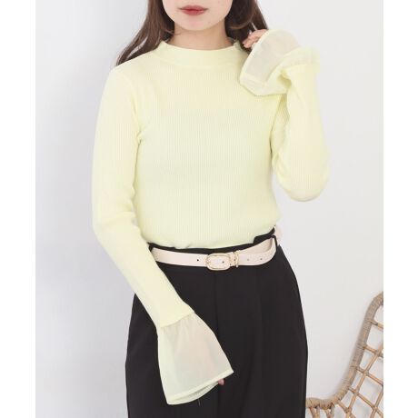 シアーカフスフレアスリーブハイネックニットプルオーバー