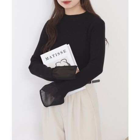 シアーカフスフレアスリーブハイネックニットプルオーバー