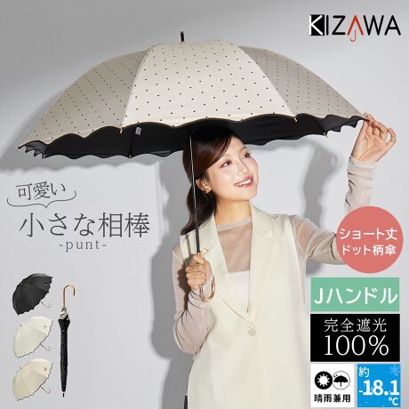 小さなドットが沢山描かれたシンプルながらもお洒落なデザインのショート丈傘「punt」。カラーは全3色展開。