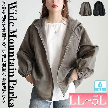 【大きいサイズ】 撥水裾ドロストワイドマウンテンパーカー 大きいサイズ レディース アウター ジャ