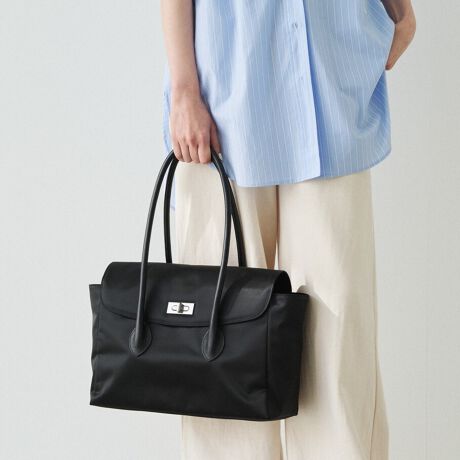 上品さと軽やかさを両立した、クラウズナイロン素材のフラップトート。