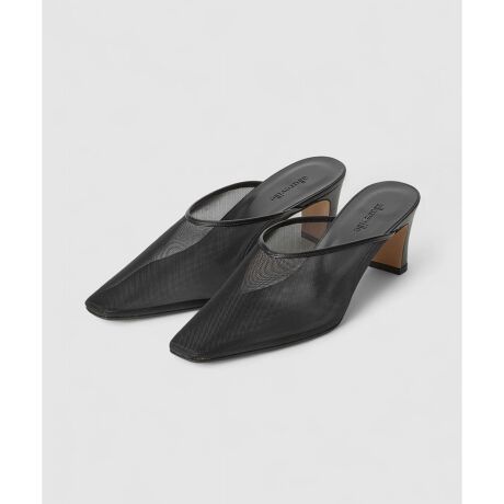繊細な透け感が足元に軽やかなニュアンスを添える、チュール素材のミュール。