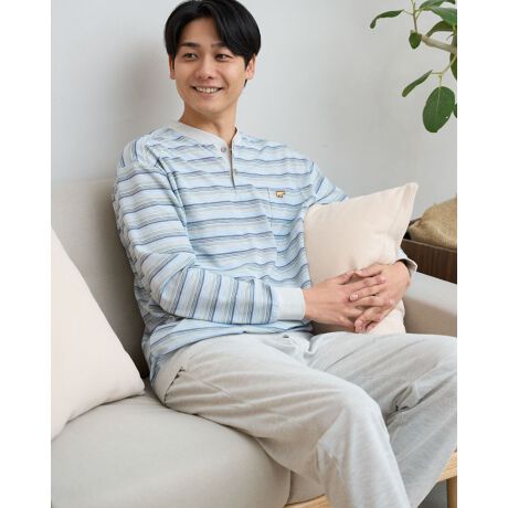 さらっとした風合いが心地よい、長袖のボーダー柄パジャマです。