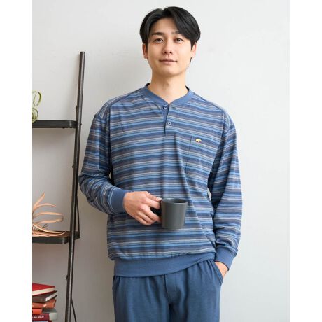 さらっとした風合いが心地よい、長袖のボーダー柄パジャマです。