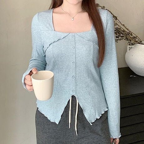 オシャレ度高め、日常に取り入れやすいスクエアネックカットソー。広めに開いたスクエアネックがデコルテラインをきれい見せ。顔まわりに自然な抜け感をつくり、すっきり見せが完成。斜めに重なった生地デザインがシンプルながらも印象に残るディテール。リブ素材の縦ラインと適度なフィット感で上半身をすっきり見せ。裾前側の逆V字カットが腰まわりに軽やかな動きをプラスします。オフィスカジュアルからデート、デイリーやお出かけまで幅広く対応。きれいめとガーリーをバランスよく楽しみたい方におすすめです。
