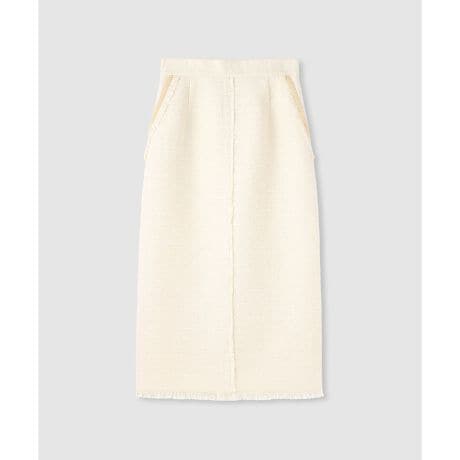 ツイードのフリンジをアクセントに効かせた、すっきりとしたIラインシルエットのスカート。