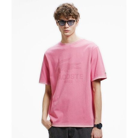 [型番:TH9434-99]多彩なボディカラーにビンテージの風合いを再現したロゴTシャツ・コットン100%のシングルジャージ素材・多彩なボディカラーに、日焼けや退色など、ビンテージさながらの経年変化を再現・ボディと同系色のブランドネームロゴ&ワニロゴプリント・左袖口にワニロゴパッチを配置
