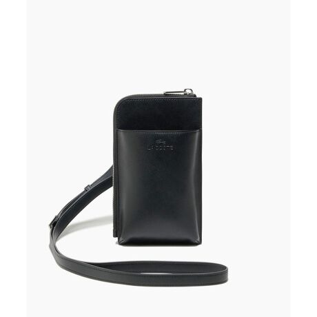 [型番:NF1720KP]多機能な収納力をスマートに持ち歩けるショルダースマホポーチ・軽やかで滑らかなPUレザー・フロントにスマートフォン用のスリットポケットを配置・立体的なワニロゴ&ブランドネームロゴ・ジップコンパートメント内にカードスロットとジップコインポケット付き・バックパネルにもスリットポケット付き