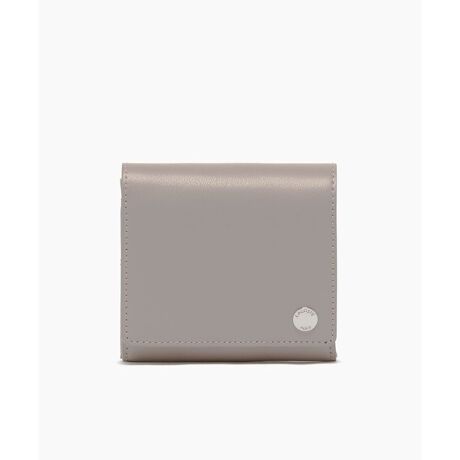 [型番:NF1711KP]上質で滑らかなレザーにシルバーブローチが映える2つ折りミニウォレット・上質で滑らかなスプリットカウレザー・右下にラコステ パリの刻印入りシルバーブローチを配置・スナップボタン開閉でコンパクトな2つ折りデザイン・口開きが良く小銭が見えやすいボックスタイプのコインポケット・カードスロットと札入れを備えたミニマルな内装設計・内側にワニロゴ箔押し