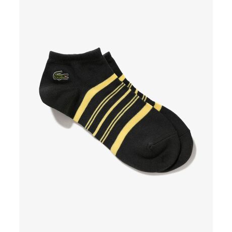 [型番:RA485J-99]カジュアルなデザインにスポーティーな機能性を添えるメッシュ切り替えボーダーくるぶし丈ソックス・コットンとポリエステルを軸としたブレンドニット素材・一部をメッシュ編みにして通気性を確保・カジュアルなアクセントを生むボーダーデザイン・履き口にワニロゴパッチを配置