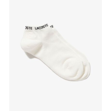 [型番:RA500J-99]履き口のジャカードが際立つウィメンズくるぶし丈ソックス・コットンとポリエステルを軸としたブレンドニット素材・スタイリングのアクセントになる履き口のブランドネームロゴジャカード・控えめに主張するボディと同色のワントーンワニロゴパッチ