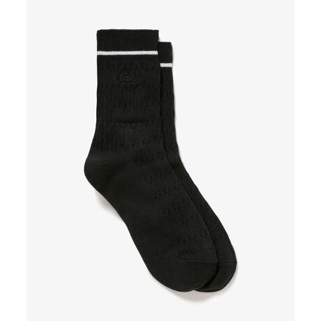 履き口の配色ラインが際立つケーブルニットソックスエレガントなケーブル柄に履き口の配色ラインでスポーティなフィーリングをミックスしたケーブルニットソックス。ボディと同色のワニロゴがシックなアクセントに。コットン×ポリエステルのブレンドニット素材の絶妙なフィット感と足底のパイル編み切り替えのクッション性が、一日中快適な履き心地をサポートします。