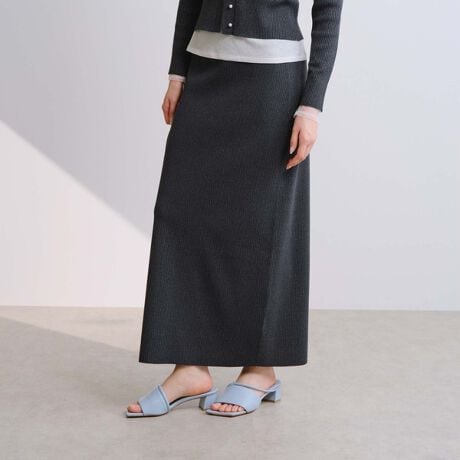 【ほど良いハリ感のリブニットでスタイルアップ見えを叶えるロングスカート】