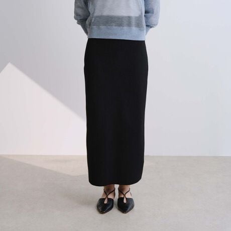 【ほど良いハリ感のリブニットでスタイルアップ見えを叶えるロングスカート】