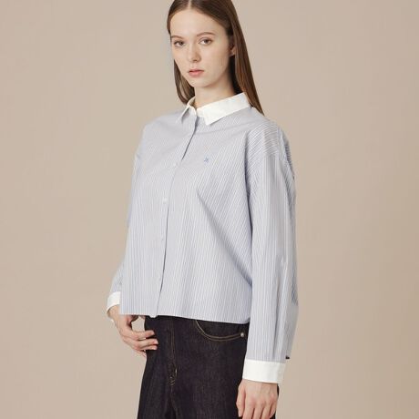 ドロップしたショルダーと、身体から離れたリラックス感のあるシルエットで、羽織としても活躍するシャツです。ブルー系(#22)は衿と台衿が白無地のクレリックがトラッドで爽やかなイメージです。左胸にはMACKINTOSH LONDONのアイコンであるMモチーフの刺繍入りです。