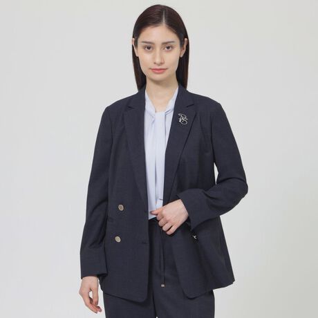 きちんとした印象ながらもカーディガンのようにさらりと羽織れるダブルジャケットです。