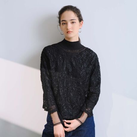【洗えるレース】コード刺しゅうレースブラウス