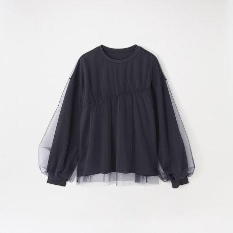 チュール部分にギャザーを寄せた立体感のあるデザインで、軽やかな印象のゆったりとしたプルオーバーに仕上げています。