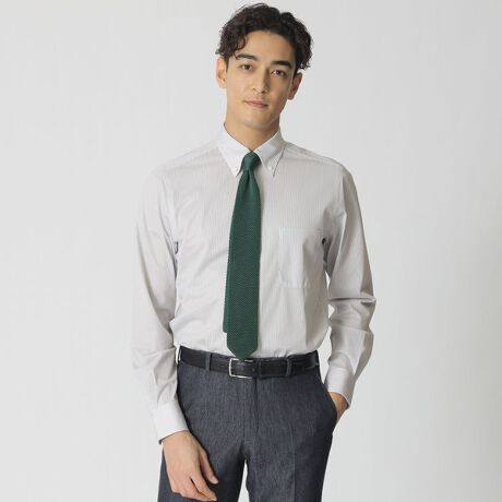 アメリカンなボタンダウンシャツ雰囲気、襟先にかけて絶妙なシェイプの利いた襟のラインの設計が特徴のシャツ。
