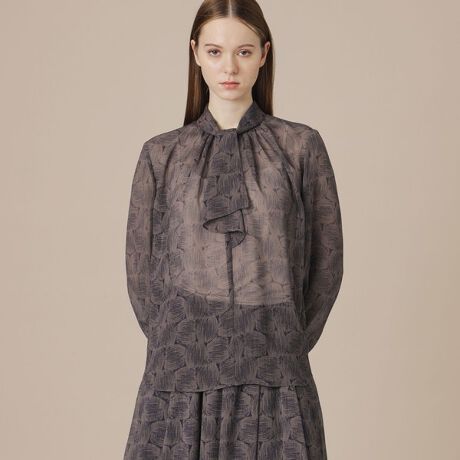 フロントにラッフルボウタイを施したブラウスです。ひらひらとしたボウタイがエレガントな印象です。一枚で着ても、ジャケットのインナーとしても活躍するアイテムです。同素材のスカート(品番:G5S03734)もご用意しております。