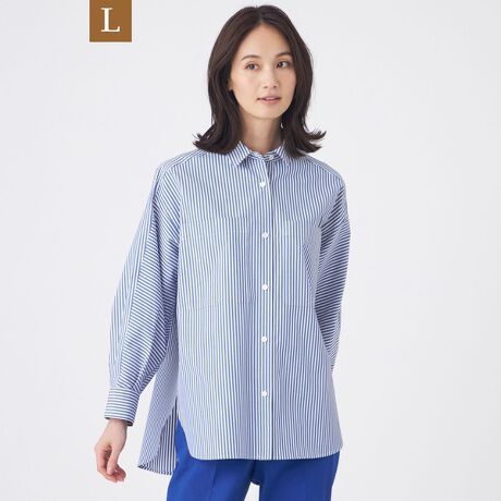 【L】【ウォッシャブル】ブルーストライプシャツ