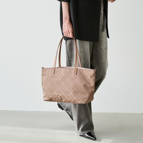 上品な表情のナイロンジャガードに、実用性をさりげなく備えたトートバッグ。