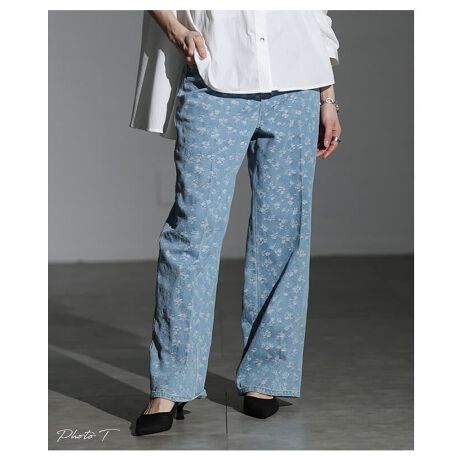 【パンツ】 レディース ロング丈 花柄 デニム ブリーチ カジュアル フェミニン 春 夏 秋 冬